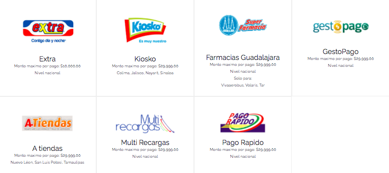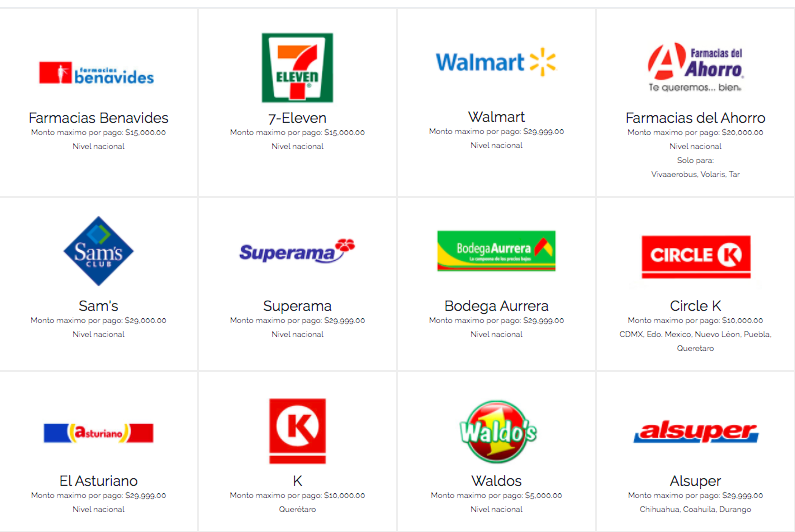 Se puede pagar en efectivo o tarjeta directamente en las siguientes tiendas de conveniencia y farmacias: