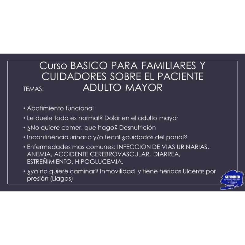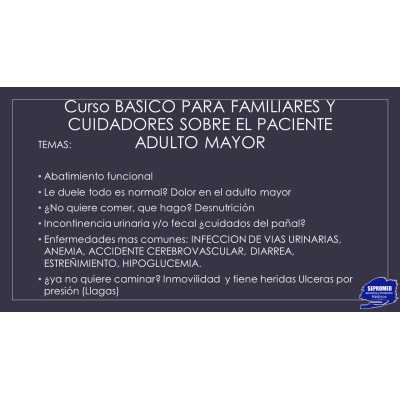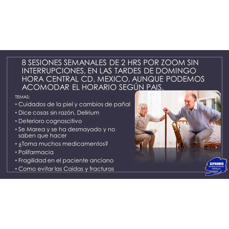 Curso para pacientes y familiares acerca de como tratar a su enfermo adulto mayor o actualizarse en los principales temas de enfermedades geriátricas, útiles para cuidadores, enfermeros o familiares de pacientes.